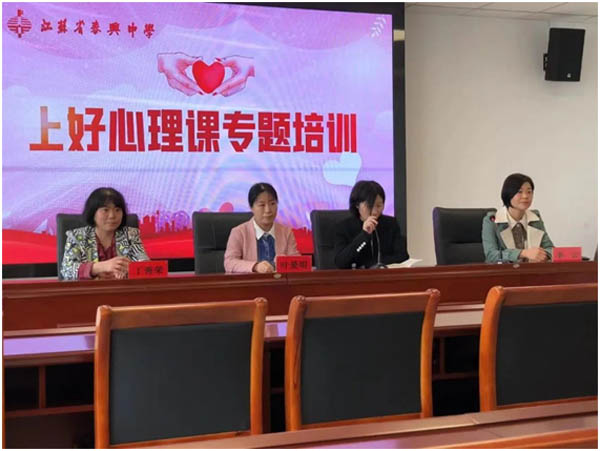 为了进一步提高我校教师对心理健康教育重大意义的认识,切实推进心理健康教育课程的落实,强化心理健康教育队伍的培养,努力营造积极心理成长环境,2022年5月11日,泰兴市心育指导大篷车来到我校开展培训活动,李云、叶爱民、丁爱荣三位指导老师为我校开展了心理辅导室建设指导和对专、兼职心理健康老师以及班主任的培训活动。