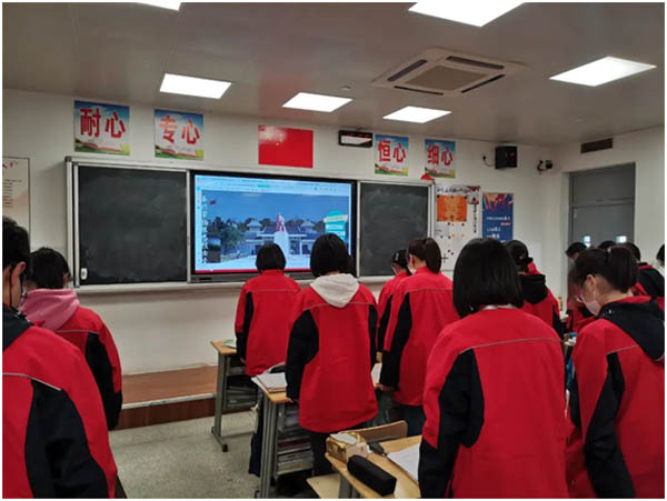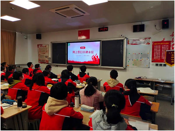 各班班主任带领学生通过课件了解清明节的由来和习俗,学习中安轮渡江烈士的伟大事迹和特级战斗英雄杨根思的革命精神,号召同学们铭记历史、努力学习、担当使命,继承先烈遗志,弘扬民族精神。同学们通过“省凭吊英雄先烈网络平台”为杨根思烈士陵园祭扫、献花并默哀。