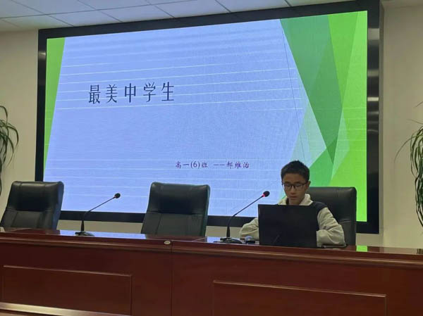 七位同学通过抽签的方式确定演讲顺序后,从学习生活、志愿活动、对传统文化的传承等方面展示自己的成果。他们勤于学习、善于创新,自强不息、自立有为,他们无私奉献、助人为乐,尊老爱亲、谦恭有礼。一张张凝聚着汗水的获奖证书、一幅幅彰显着爱心的社会实践照片,展示着泰中学子的青春风采。
