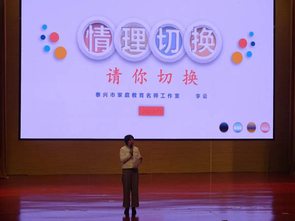 泰兴市家庭教育指导名师工作室成员李云老师以“情理切换(请你切换)”为主题作交流发言,她建议在开始家庭教育前,家长先把自己切换到理智状态,然后再关注孩子的情绪状态。