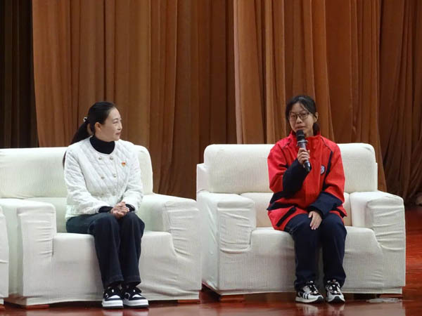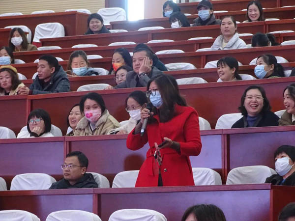 现场的家长与殷教授交流互动,就家长提出的关于如何管理学生手机的问题,殷教授建议,家长可以与孩子共同商量手机使用计划,家庭成员共同遵守家庭手机管理,做和谐有效地沟通。