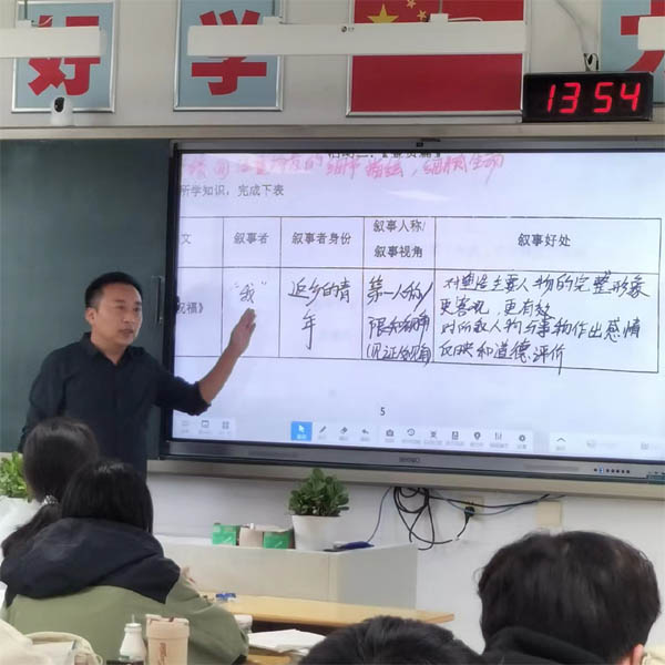 顾菊芬老师的这堂课是在之前已经做了“小说叙述艺术复习”基础上的再度深化、细化,选取叙述视角转换的角度,在温故而知新中进一步筑牢织密知识网络,以小说《红岩》和《长跪大别山》为典例,引导学生对小说叙事艺术中的视角问题进行巩固性理解。随之加以对点训练,有效提升学生文本分析能力和梳理概括水平。顾老师教学思路清晰,深耕文本,注重细节,不仅让学生们对文本的理解更加深入,也培养了他们的思维品质和思辨能力。