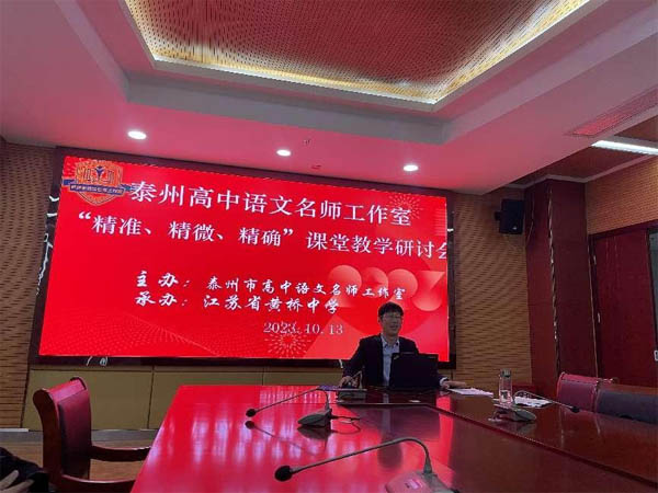 砥志研思,精进不息。为进一步提升泰州市高三语文一轮复习的效果,应对“三新”背景下的新高考,2023年10月13日,泰州市尹继东高中语文名师工作室在江苏省泰兴中学举行“精准、精微、精确”高三语文一轮复习观摩课,工作室全体成员参与此次活动。