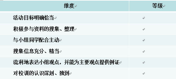 根据学生在活动中的表现制作评价表,既评价学习情况,又引导活动过程。