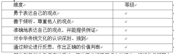 在“传统文化是包袱还是财富”辩论赛中设计了下面的评价表