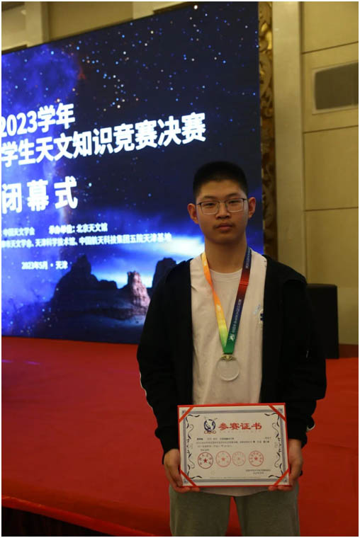 学年全国中学生天文知识竞赛铜牌。