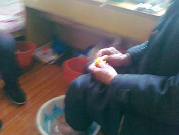 到了太舅姥爷的房间,老人家看到如此多的人来看他,忍不住流下了热泪。陈打来热水,给老人家泡脚暖和暖和。李剥了橘子递给老人家,太舅姥爷颤抖着双手接下。