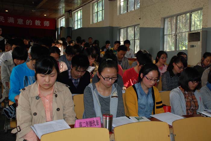 4月28日下午,我校在多功能报告厅召开了第十四次团代会。泰兴市人大副主任、校长王中先,共青团泰兴市委副书记秦娟,党委副书记、副校长钱留华,党委副书记钱凯,工会主席叶育才,校长助理栾军,政教处主任孙家,校团委书记、校史办公室主任曹军出席会议。来自全校各学生团支部及教工团支部的120名正式代表参加了本次团代会。大会由游洋老师主持。