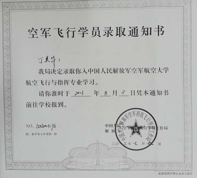 “招收女飞行学员的机会极少,这样难得的机会不能错过。”丁美华说,当初报考飞行员也只是想尝试一下,没有想到就考上了。
