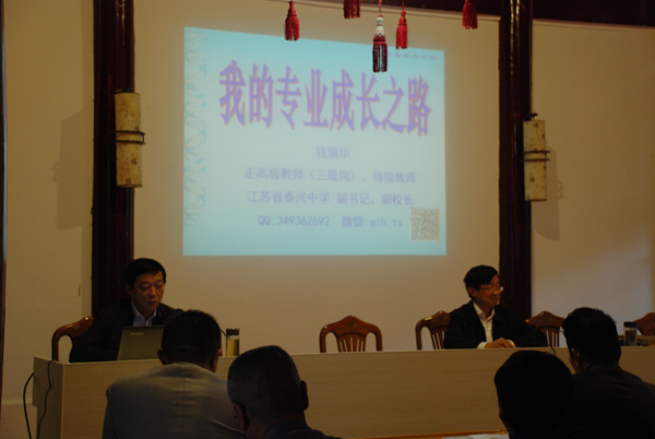 议课结束后,我校钱留华副校长和教务处曹坤副主任,分别做“我的成长之路”专题报告,介绍他们成长为正高级教师和特级教师的奋斗历程,并与来访师生分享了各自的教育教学思想与成长感悟。