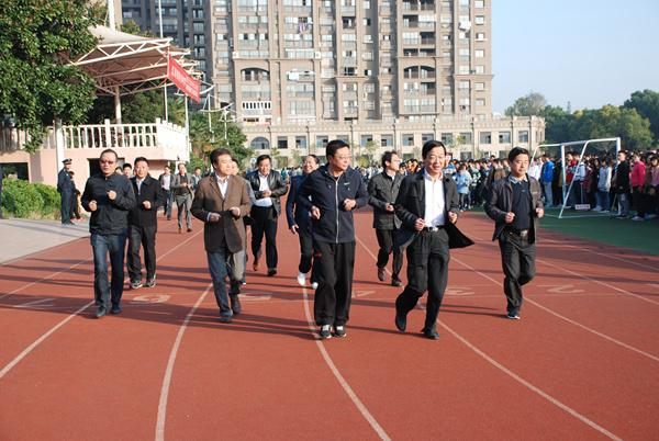 着眼于提升师生综合素质,我校大力推进“阳光体育”和师生健身运动,鼓励大家走出教室,走向操场,牢固树立“我运动、我健康、我快乐”的生活理念;鼓励师生重视写好“健康生活”这个“1”,后面不断添加“事业成功”一个又一个“0”,使自己的体魄与精神协调发展,提升生命的质量。今天举办运动会,就是为了搭建一个竞技交流的平台,激励全体同学平时认真上好体育课,倡导全体师生参加各项体育活动,进而为学习和工作创造更好的身体条件,为学校发展提供更强的激情活力和精神动力。