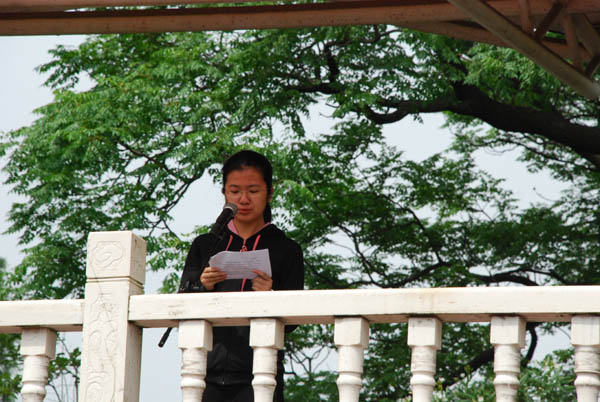 海到尽头天作岸,山登绝顶我为峰。面对学弟学妹真诚的祝福,高三的学长学姐报以热烈的掌声予以回应。周心怡同学代表全体高三学子向母校献词,感恩母校,感恩老师,并表达了搏击高考、放飞六月、铸造辉煌的信心和决心。