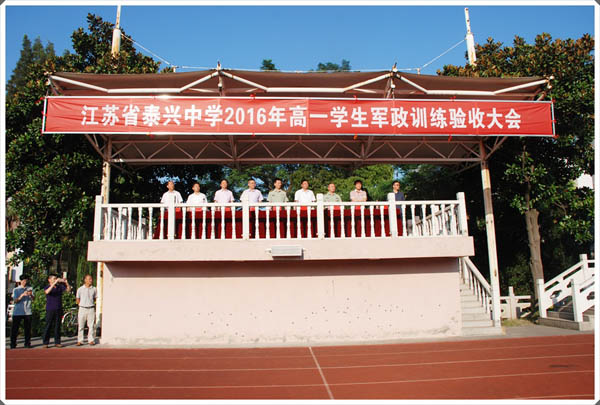 8月29日上午7时许,天高云淡、风和日丽,江苏省泰兴中学田径运动场上,近800名新生身着绿色军装,精神抖擞、昂首列队、整装待命,预示着2016级新生军训会操表演拉开帷幕。泰兴市市委常委、人武部部长朱俊浩,泰兴市人大副主任、我校校长王中先,泰兴市教育工委副书记曹德明,泰兴市济川街道办人武部部长钱雪峰出席会操表演大会。我校钱留华、钱凯、朱熔华、栾军、朱金宝等领导在主席台观礼。