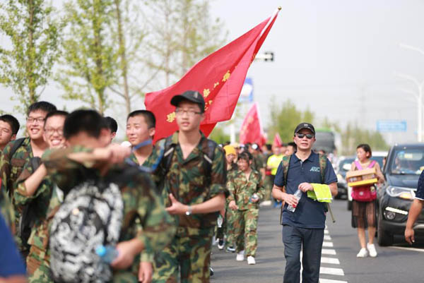行进途中,兴致勃勃的同学、全程伴行的班主任、指挥若定的校领导、贴心服务的家长助威团,共同构筑了红色闪烁、绿波涌动的靓丽风景线。