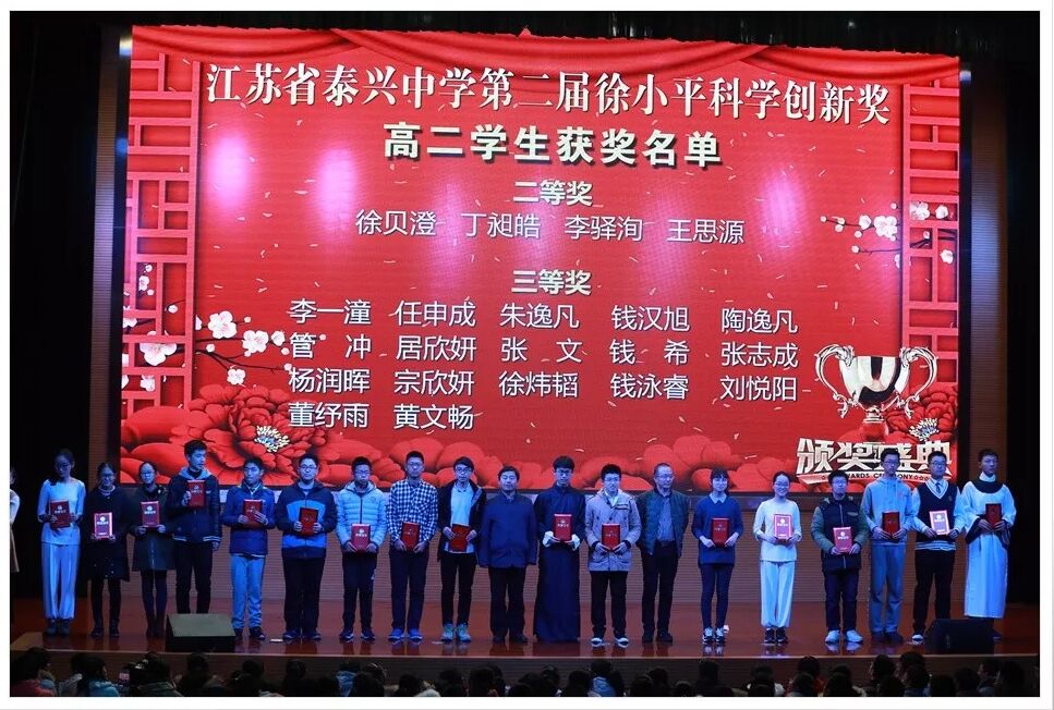 12月30日晚7时起,高二年级举办2018年元旦晚会。师生同台,喜气洋洋,欢声笑语,响彻全场。家长代表也登台献艺,向师生献上新年的祝福。期间,举行了江苏省泰兴中学第二届徐小平科学创新奖颁奖仪式。