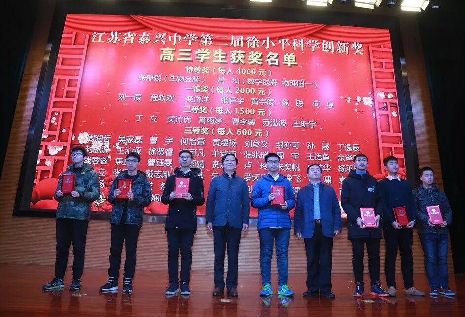 2017年12月31日上午8时30分,2018年高三元旦联欢会精彩呈现。王校长现场致辞,他勉励高三学子拥抱新时代,展示新姿态,顽强拼搏,放飞梦想。校领导为江苏省泰兴中学第二届徐小平科学创新奖高三年级获得者颁奖。大家欢聚一堂,载歌载舞,以燃燃燃的节目将欢庆活动推向高潮。