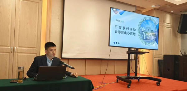施礼兵围绕“深耕五育并举 培育时代新人”作专题报告。他结合学校特色活动和新时代学生发展特点,从班主任队伍建设、德育课程、家校合作、阳光心理、奖助活动等方面介绍德育体系建构,同时表示我校将依托“三立”课程基地,在德育上走出一条创新之路。