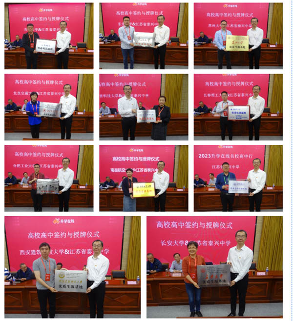 近日,清华大学、复旦大学、华南理工大学、吉林大学、东北大学、苏州大学、北京交通大学等十多所高校来我校举行“优质生源基地”签约授牌仪式。这不仅是对泰兴中学办学质量的认可和鼓励,也在我校与各高校之间建起了一座加深友谊、继往开来、共谋发展的新桥梁。