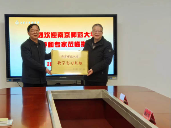 南京师范大学生科院副院长戴亦军教授代表南京师范大学向我校授予“南京师范大学教学实习基地”牌匾,钱留华书记代表学校接受牌匾。