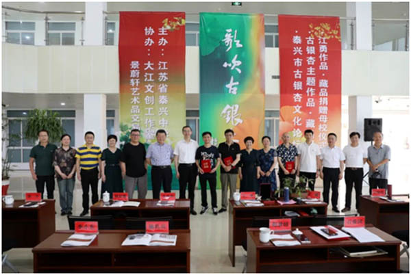 时值夏至,万物繁盛。为进一步传承泰兴银杏文化,提升我校学生的文化艺术素养,2024年6月21日下午,“‘歌吹古银杏’江勇先生原创艺术作品及藏品捐赠仪式暨泰兴古银杏文化论坛活动”在我校举行。原泰兴市政协主席丁亚,泰兴中学党委副书记、校长肖春华,原政协教卫文体委主任江勇,原泰兴科协主席许咏诗,泰兴济川街道党工委委员陈旭霞,泰兴书协主席幸平,观道博物馆馆长丁沛,大江文创顾问赵景园,泰兴中学副校长施礼兵,政教处主任李小东,以及部分师生代表出席此次活动。活动由泰兴市融媒体中心王敏主持。
