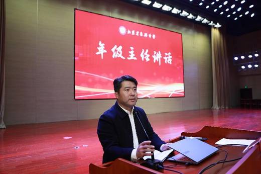 钱继兵围绕家庭教育、年级管理、成绩诊断、家校共育四大核心板块,为家长们带来了详尽的工作汇报。